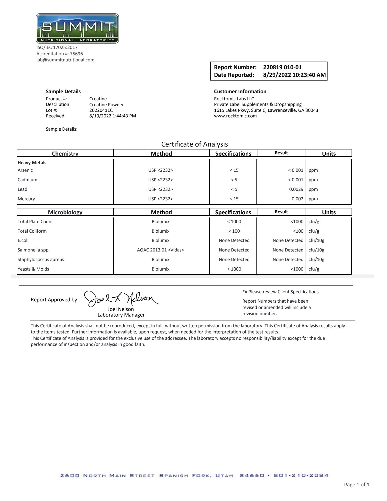 Creatine powder is formulated to optimize exercise performance, cognitive function, immune health, and muscle growth. Our product is synthesized utilizing the latest scientific research and formulated with optimal ratios of collagen peptides to produce world class results. Our formula is third party independently tested for heavy metals, impurities, made in the USA, GMP certified, and produced in an FDA registered facility. 1% of the supplements on the market can match our world class standards. |