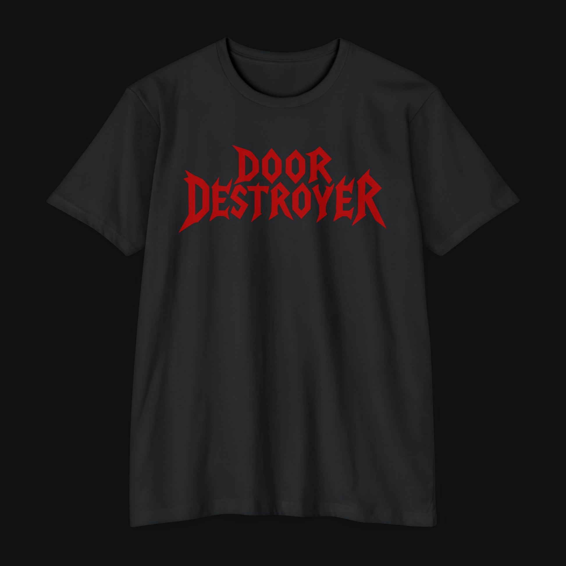 This tee carries a punch — light, breathable, and built for days when you want your wardrobe to speak a little louder. The stone-gray fabric provides a calm, worn-in backdrop while the jagged red "Door Destroyer" lettering cuts through with attitude. It sits comfortably in a classic fit, draping naturally over shoulders without feeling heavy. Wear it to a basement show, while working on a DIY project, or when you just want an easy layer that hints at grit and humor. The soft combed cotton blend and resilient ribbed collar mean it moves with you and keeps its shape through repeat wears and washes. Subtle details like the tear-away label and smooth shoulder tape make it feel clean and lived-in, not fussy.